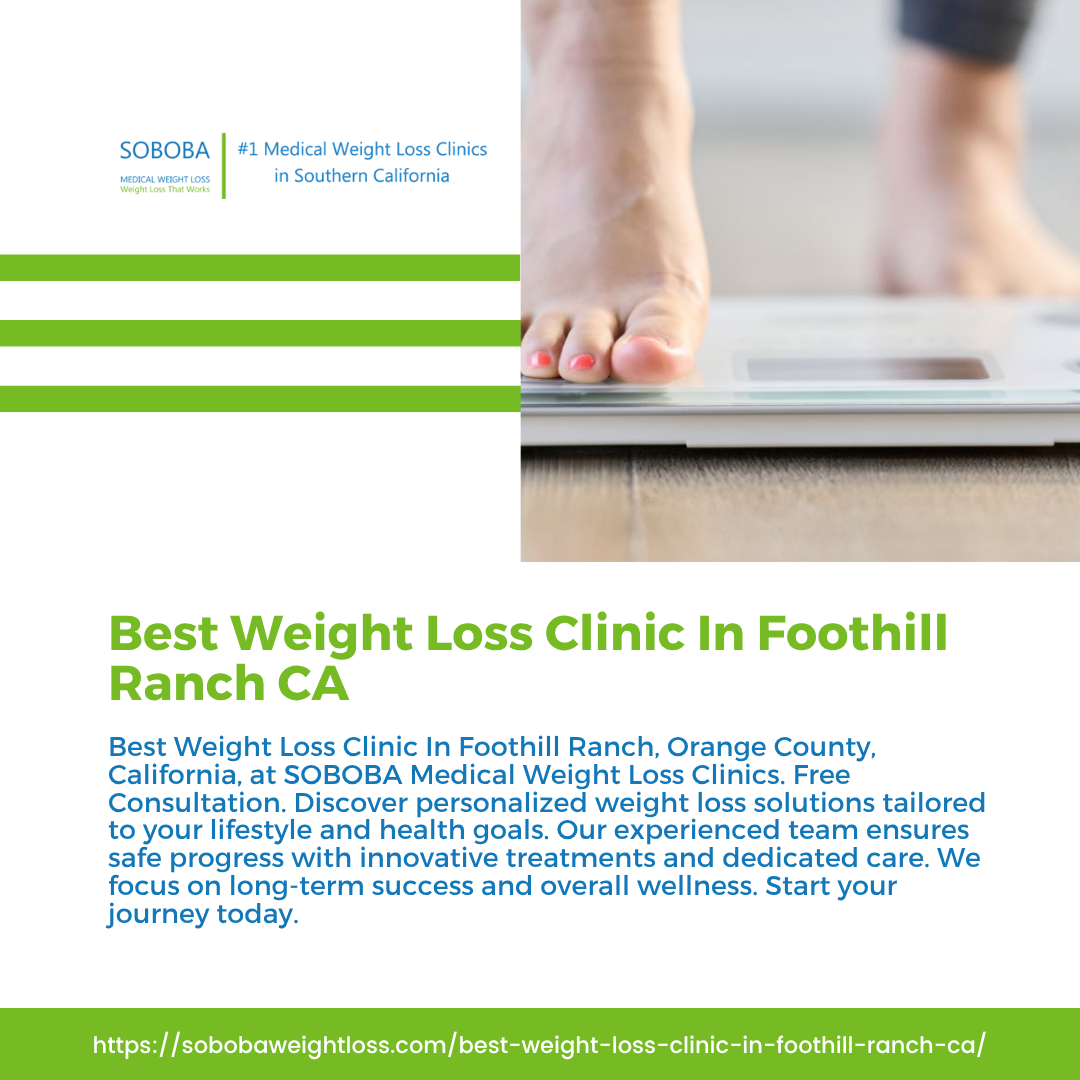 Best Weight Loss Clinic In Foothill Ranch, Orange County, California, at SOBOBA Medical Weight Loss Clinics. Free Consultation. Discover personalized weight loss solutions tailored to your lifestyle and health goals. Our experienced team ensures safe progress with innovative treatments and dedicated care. We focus on long-term success and overall wellness. Start your journey today.
