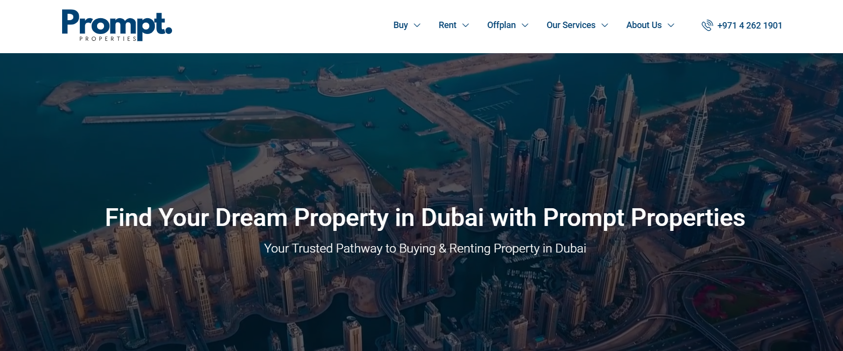 Explore an exceptional range of luxury properties and top real estate opportunities in Dubai with Prompt Properties. We help you find the perfect home, whether you are searching modern villas, stylish apartments, premium townhouses, or high-end for penthouses. Our listings also include attractive off-plan projects from leading developers across the UAE, giving investors and buyers access to the best upcoming communities. With professional guidance, updated market insights, and carefully selected properties, Prompt Properties makes your buying or renting journey simple, secure, and efficient. Start discovering the finest real estate options in Dubai and experience a higher level of service and value.