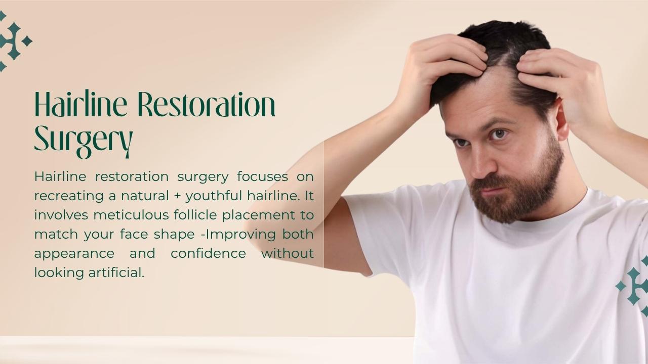 Hairline Restoration Surgery for a Natural & Youthful Hairline Hairline restoration surgery helps recreate a natural-looking hairline by carefully placing healthy hair follicles.