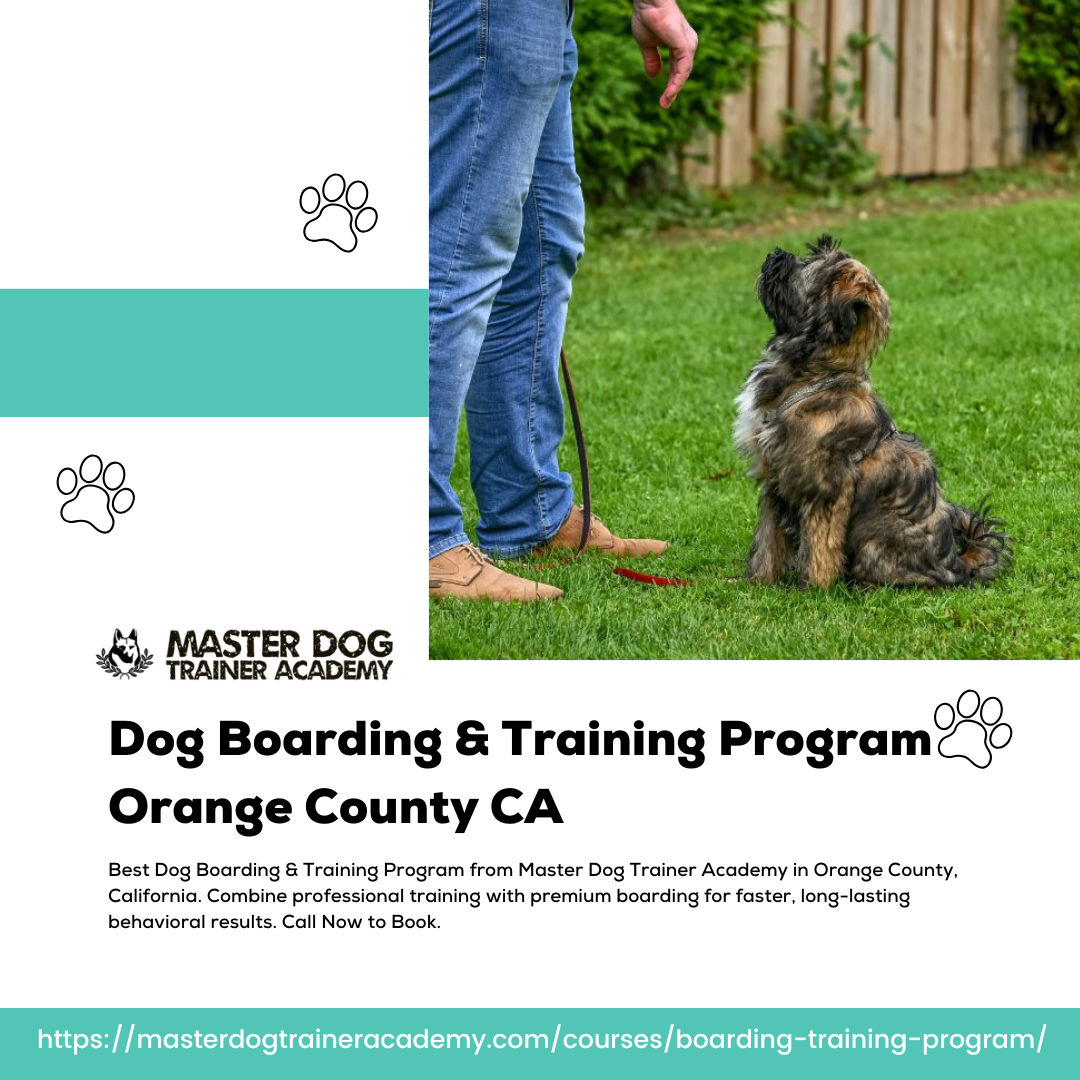 Best Dog Boarding & Training Program from Master Dog Trainer Academy in Orange County, California. Combine professional training with premium boarding for faster, long-lasting behavioral results. Call Now to Book. This program is ideal for dog owners who want to improve their dog’s behavior while they are away, combining structured boarding with professional training sessions. Dogs receive daily training focused on obedience, behavior correction, and socialization under the supervision of experienced trainers. The immersive environment allows dogs to learn faster and develop consistent habits that lead to long-term success. Our trainers use proven methods tailored to each dog’s needs, ensuring effective results in a safe and controlled setting. This program not only improves behavior but also builds confidence and strengthens communication between dogs and their owners once training is complete.