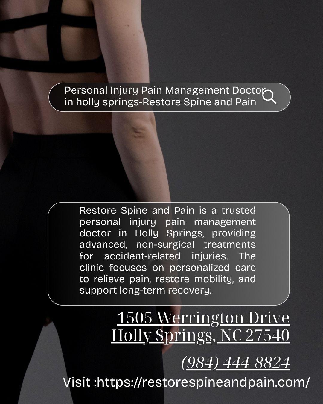 Restore Spine and Pain is a trusted Workers’ Compensation pain doctor in Holly Springs, providing specialized care for work-related injuries. We focus on accurate diagnosis, personalized treatment plans, and effective pain management to help patients recover safely and return to work.