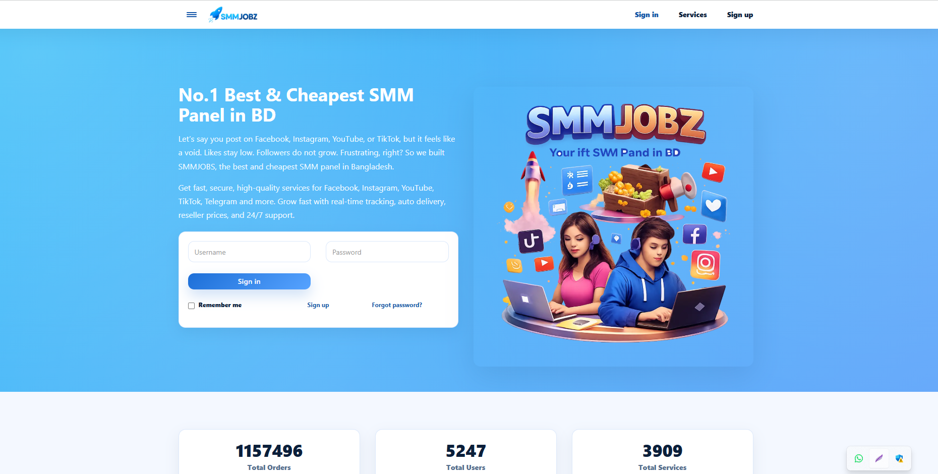 SMMJobz is a trusted digital marketing platform offering affordable and reliable social media services for businesses and individuals. If you are looking for a smm panel in bangladesh, SMMJobz provides a complete solution with fast delivery and real engagement. We support easy payments through smm panel bkash, making transactions simple and secure for Bangladeshi users. As a leading smm panel bd, we offer services such as Facebook likes, Instagram followers, YouTube views, and more. Our panel is designed to help brands grow online visibility without wasting time or money. SMMJobz focuses on quality, transparency, and customer satisfaction. Whether you are a freelancer, reseller, or business owner, our services are suitable for all levels. With 24/7 support and instant order processing, SMMJobz stands out as a reliable choice in the competitive market of social media marketing in Bangladesh. website: https://smmjobz.com/
