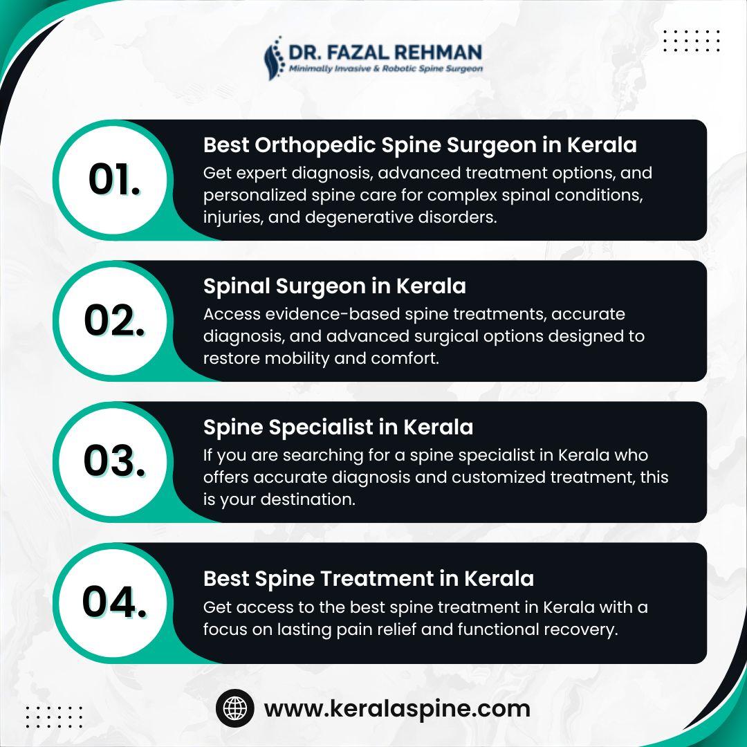Searching for the best orthopedic spine surgeon in Kerala for long-lasting relief from back or neck pain? Get expert diagnosis, advanced treatment options, and personalized spine care for complex spinal conditions, injuries, and degenerative disorders. From conservative care to surgical excellence, patients receive compassionate treatment using modern techniques. Book a consultation today with Dr Fazal Rehman, a trusted name in spine care across Kerala, known for patient-focused outcomes and clinical precision.