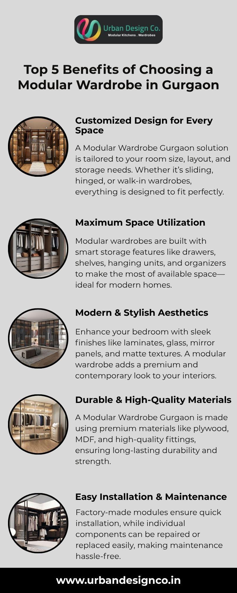 Upgrade your bedroom with a Modular Wardrobe Gurgaon designed for style and functionality. Enjoy customized layouts, smart storage solutions, and premium materials that enhance your space. Discover modern wardrobe designs tailored to your needs with expert craftsmanship from Urban Design Co. for a perfect blend of elegance and durability.