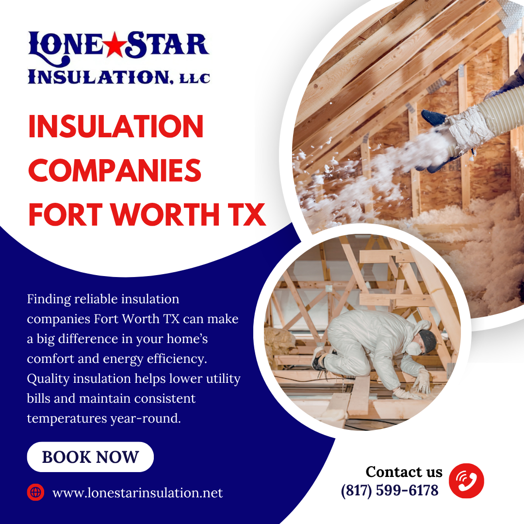 Choosing the right insulation companies Fort Worth TX ensures better performance and long-term savings. From attic to wall insulation, expert installation improves comfort and efficiency. Make the smart move by working with experienced professionals. Contact Lone Star Insulation, LLC today and upgrade your space with confidence.