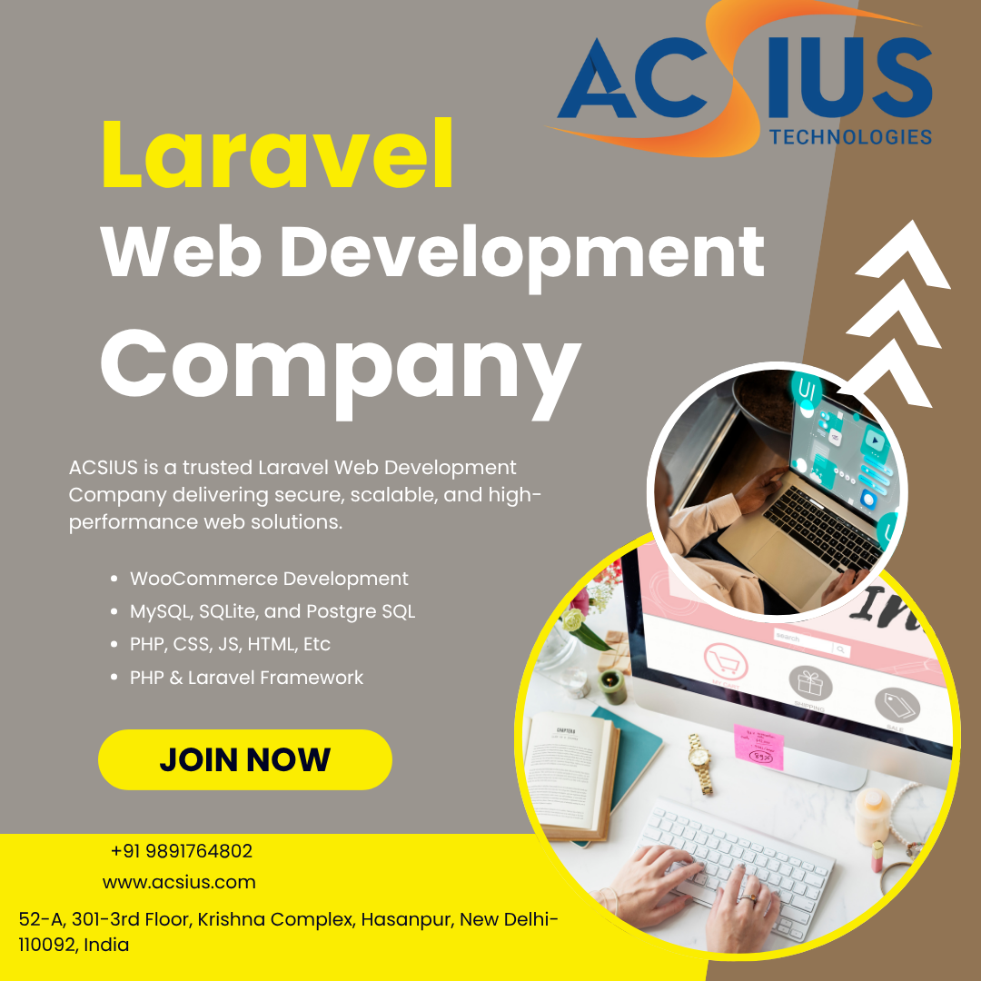 ACSIUS is a trusted Laravel Web Development Company, delivering robust, scalable, and secure web applications using the Laravel PHP framework. Their expert developers handle custom website development, API integrations, e-commerce solutions, and performance optimization. With clean code, responsive design, and maintainable architecture, ACSIUS provides businesses with high-quality Laravel applications tailored to their unique requirements, ensuring long-term growth, seamless functionality, and a strong online presence.