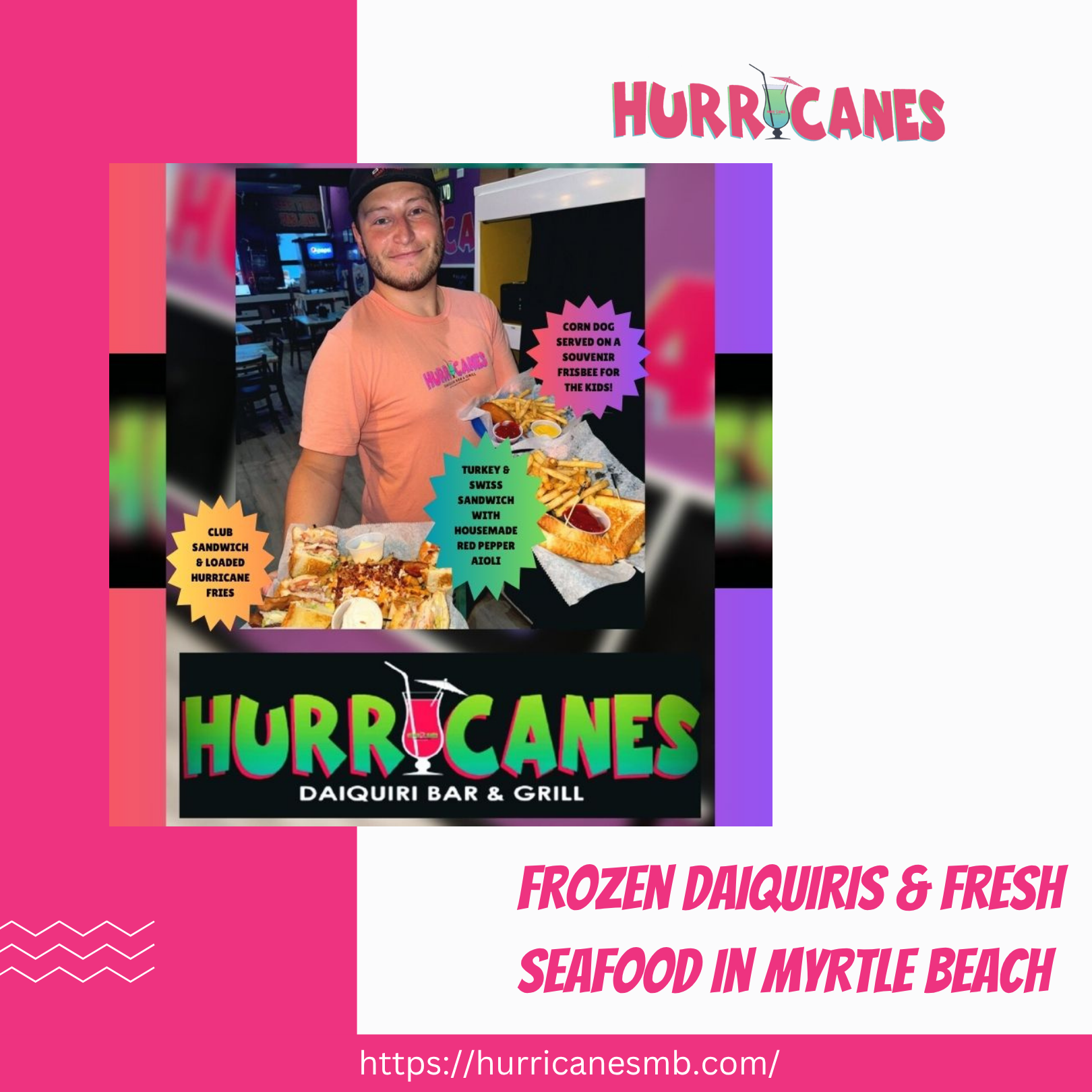 Join the fun at Hurricanes Daiquiri Bar & Grill, Myrtle Beach’s best Daiquiri Bar & Grill. Chill with tropical drinks, beach views, and great company!
