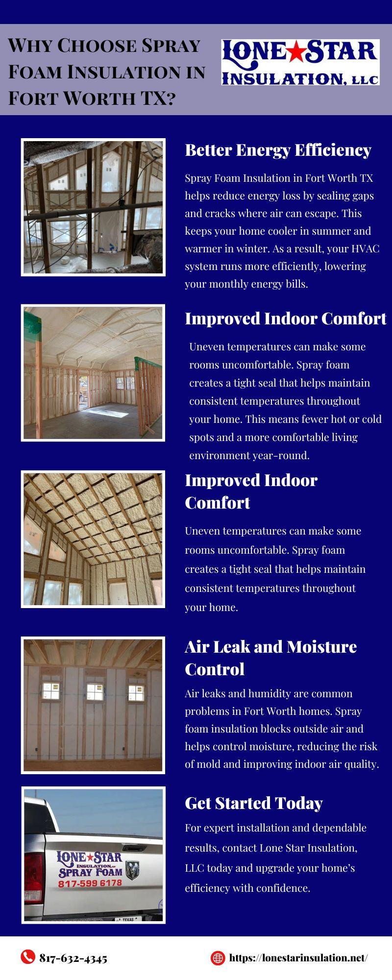 Why Choose Spray Foam Insulation in Fort Worth TX? Spray Foam Insulation in Fort Worth TX is a smart choice for improving energy efficiency, indoor comfort, and long-term performance. It helps seal air leaks, maintain consistent temperatures, and control moisture issues. With its durability and ability to reduce energy costs, it’s a reliable solution for homeowners. Choosing professional installation ensures the best results and lasting benefits for your home. Visit Now :- https://lonestarinsulation.net/spray-foam-insulation/