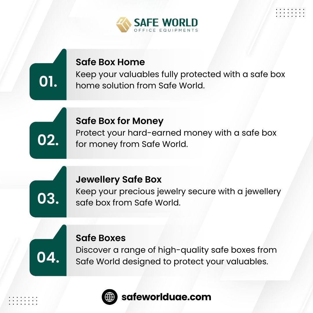 Keep your valuables fully protected with a safe box home solution from Safe World. Our safes are designed to secure cash, jewelry, and important documents while fitting seamlessly into your home decor. With advanced locking mechanisms and durable materials, Safe World ensures your home is safeguarded against theft and emergencies. Invest in a reliable safe box today for complete peace of mind.