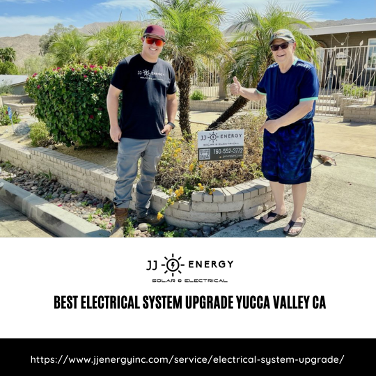 Best Electrical System Upgrade Yucca Valley CA Looking for expert electrical system upgrades in Coachella Valley, Desert Hot Springs, Palm Springs, Indio, La Quinta, Rancho Mirage & more? Contact JJ Energy Inc. today! JJ Energy Inc. specializes in professional electrical system upgrades that improve safety, efficiency, and performance for homes and businesses across the Coachella Valley. Our licensed electricians handle everything from panel replacements and rewiring to circuit expansions, lighting upgrades, and surge protection. Whether you’re renovating your property, adding new appliances, or preparing for solar or EV charging installation, we ensure your electrical system is modern, reliable, and compliant with the latest safety standards. With years of hands-on experience and attention to detail, JJ Energy Inc. delivers seamless upgrades that enhance energy flow, prevent overloads, and support sustainable power use. We use only high-quality materials and state-of-the-art tools to guarantee long-lasting results. Customers throughout Desert Hot Springs, Indio, Palm Springs, and surrounding areas trust JJ Energy Inc. for dependable service, transparent pricing, and expert workmanship. Whether it’s a residential upgrade or a commercial retrofit, our goal is to provide safe, efficient, and future-ready electrical solutions. Contact us today to schedule your electrical system upgrade consultation. Click here- https://www.jjenergyinc.com/service/electrical-system-upgrade/