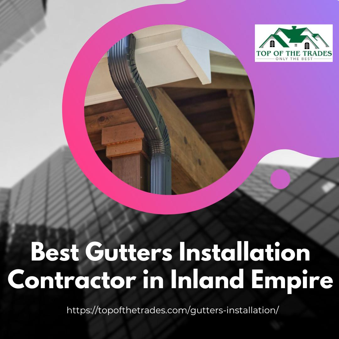 Best Gutters Installation Contractor in Inland Empire Affordable Rain Gutter installation, Best Price Gutter Replacement in Los Angeles, Orange County & Upland, CA. Contact us today. Protect your property with expert rain gutter installation and replacement services. Our skilled team delivers durable, leak-resistant gutters that prevent water damage and preserve your home’s foundation. Serving Los Angeles, Orange County, and Upland, we offer competitive pricing and professional craftsmanship. Choose from aluminum, steel, or seamless options for lasting performance and visual appeal. Contact us today for affordable, long-lasting gutter solutions and free on-site estimates. https://topofthetrades.com/gutters-installation/