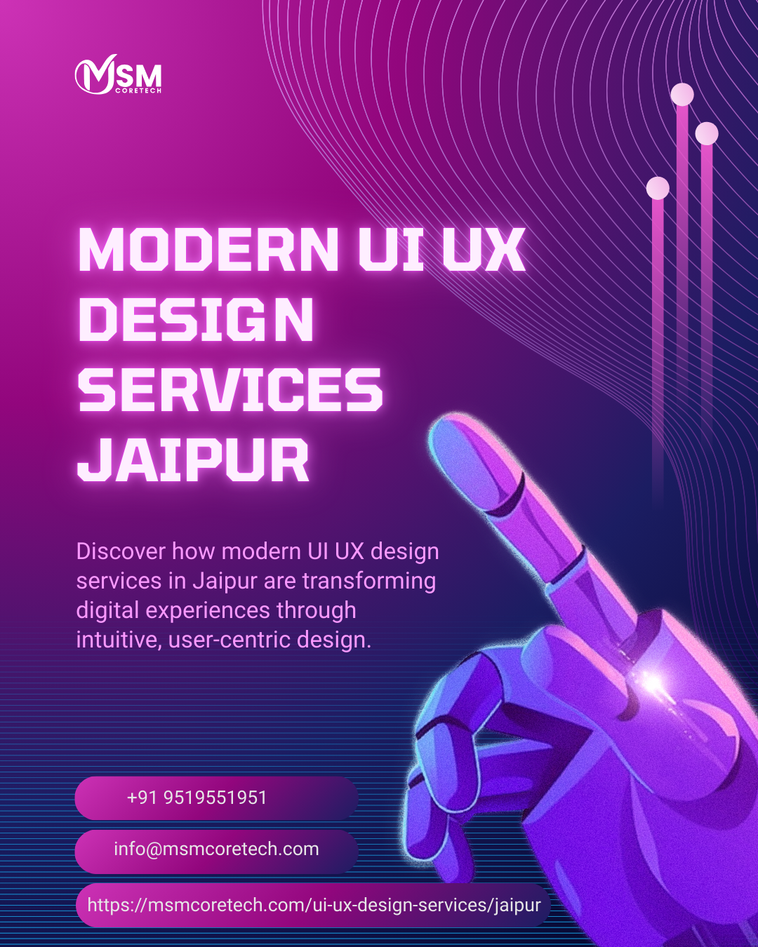 UI UX Design Services in Jaipur – User-First Experiences This creative visual highlights professional UI UX Design Services in Jaipur focused on user-centered thinking and clean design. From smooth user journeys to fast, responsive interfaces, every element is crafted to enhance usability and brand consistency. With data-driven decisions and visually appealing layouts, businesses can deliver engaging digital experiences that convert visitors into loyal users while maintaining a strong and consistent brand identity. https://msmcoretech.com/ui-ux-design-services/jaipur