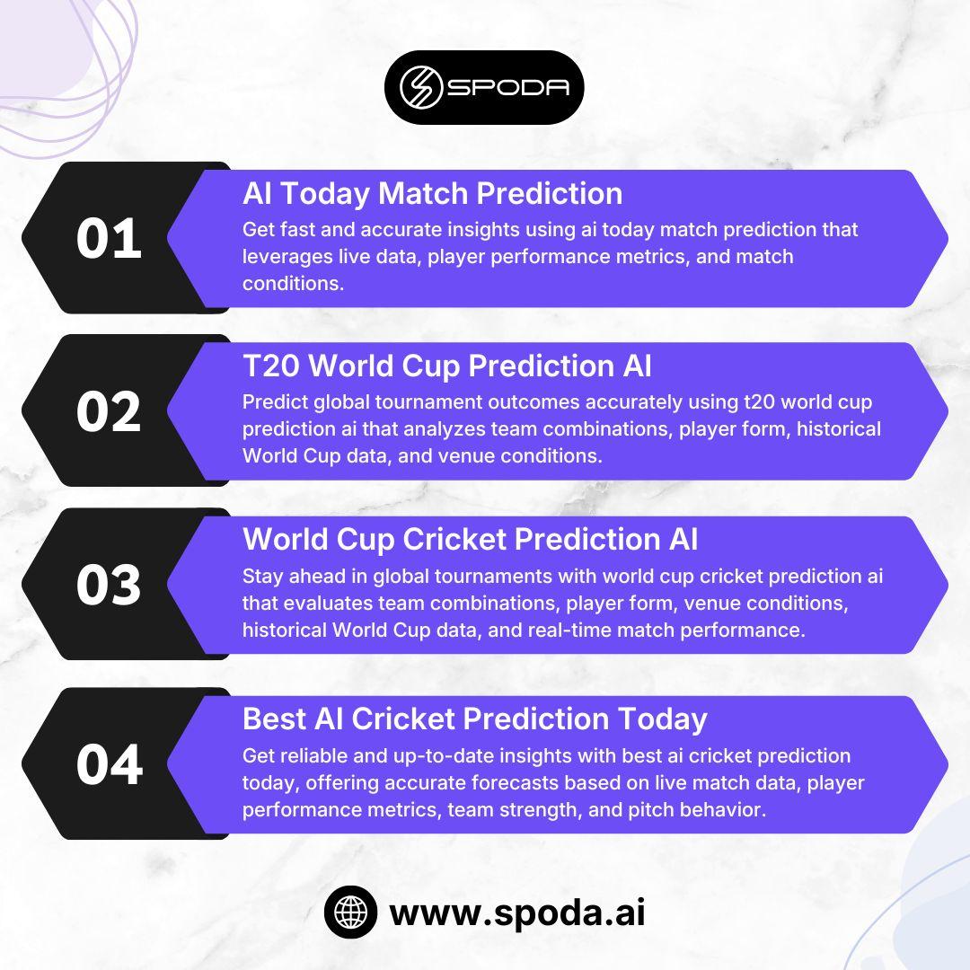 https://www.spoda.ai/Predict global tournament outcomes accurately using t20 world cup prediction ai that analyzes team combinations, player form, historical World Cup data, and venue conditions. This AI-driven solution helps users forecast match winners, key performances, and tournament trends with confidence. Enhance your World Cup experience with reliable, data-backed insights developed by Spodata Solutions Pvt Ltd, leaders in AI-powered cricket analytics. https://www.spoda.ai/0 Commenti 0 condivisioni 5 Views 0 AnteprimaEffettua l'accesso per mettere mi piace, condividere e commentare! - Unlock deep insights with cricket analysis ai that evaluates player stats, team form, historical data, and live trends for IPL, T20, WPL, and international matches. Enhance prediction accuracy, develop smarter strategies, and stay ahead in cricket analytics. Rely on Spodata Solutions Pvt Ltd for advanced AI-powered cricket analysis and precise forecasting solutions tailored for enthusiasts, analysts, and bettors.