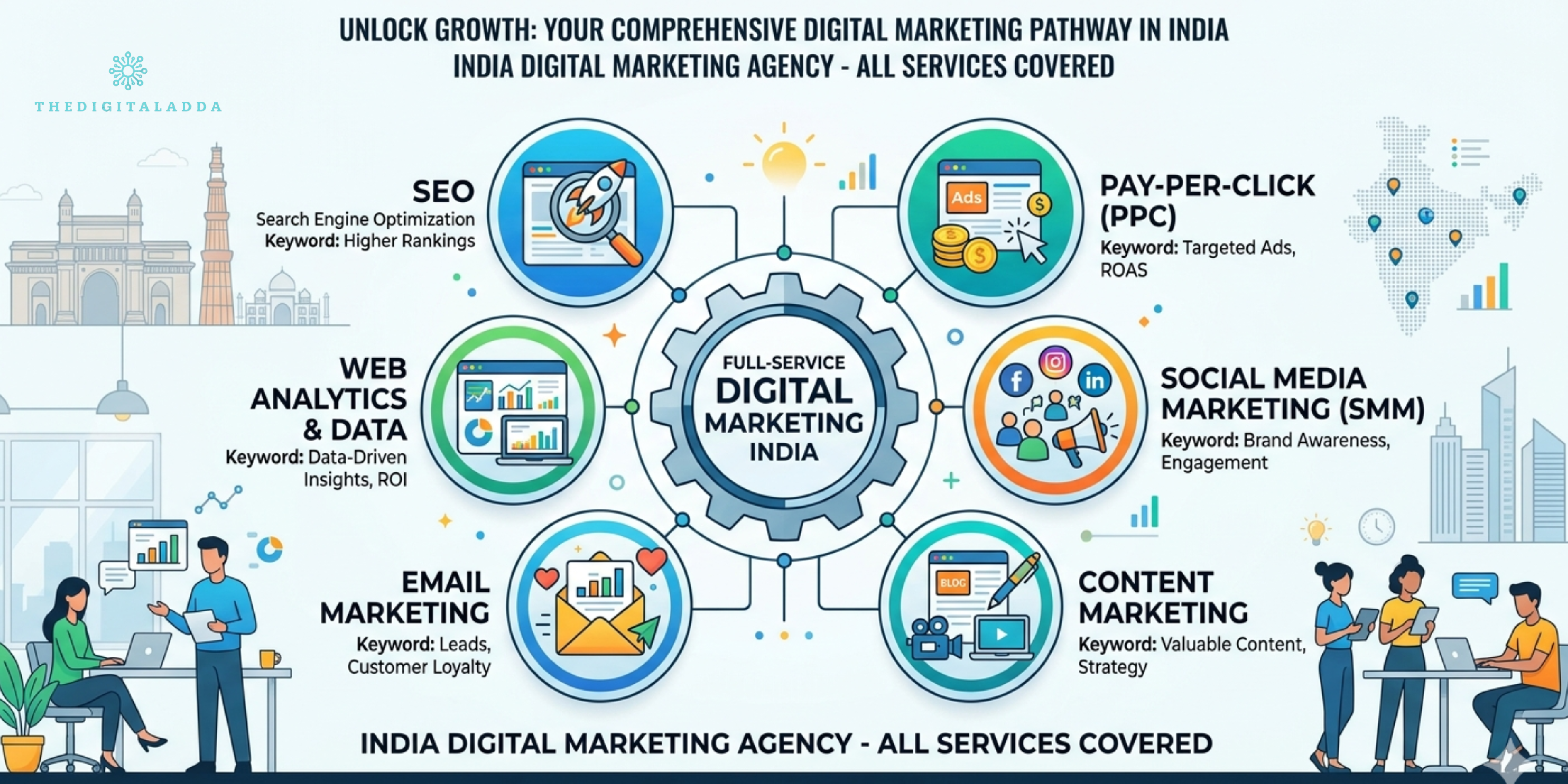 The Digital Adda is a results-driven digital marketing agency focused on helping businesses grow online through SEO, paid advertising, and social media marketing. We create data-backed strategies that drive real leads, visibility, and measurable growth.